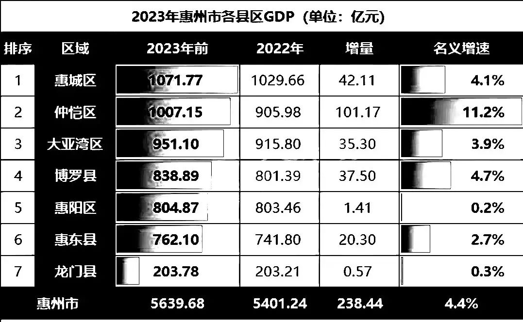 惠州四区三县里,大亚湾常年稳居前三的位置,除了超越不了惠城区外,每年GDP产量要么第二,要么第三。